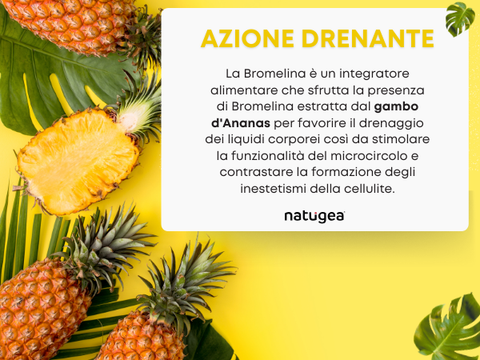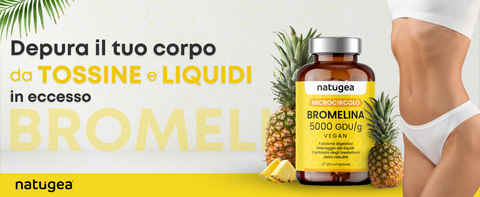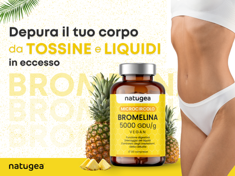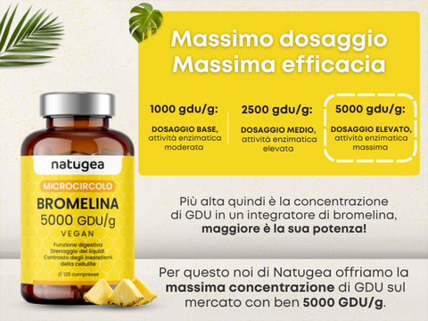 Bromelina 5000 GDU È un integratore in compresse indicato per favorire la funzione digestiva, il drenaggio dei liquidi corporei e la funzionalità del microcircolo, contrastando gli inestetismi dovuti alla cellulite ed alleviando la sensazione di gambe pesanti.