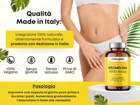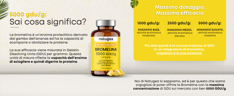 Prodotto davvero efficace, sopratutto perchè contiene solo Bromelina, con 5000 gdu reali a differenza di altri prodotti che mixano Bromelina con Gdu differenti. Ottimo per migliorare la digestione e asciugarsi un po. Lo riacquisteró sicuramente.